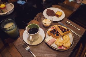 No café da manhã temos a presença ilustre do nosso waffle, e você pode ficar à vontade para recheá-lo da forma que quiser.